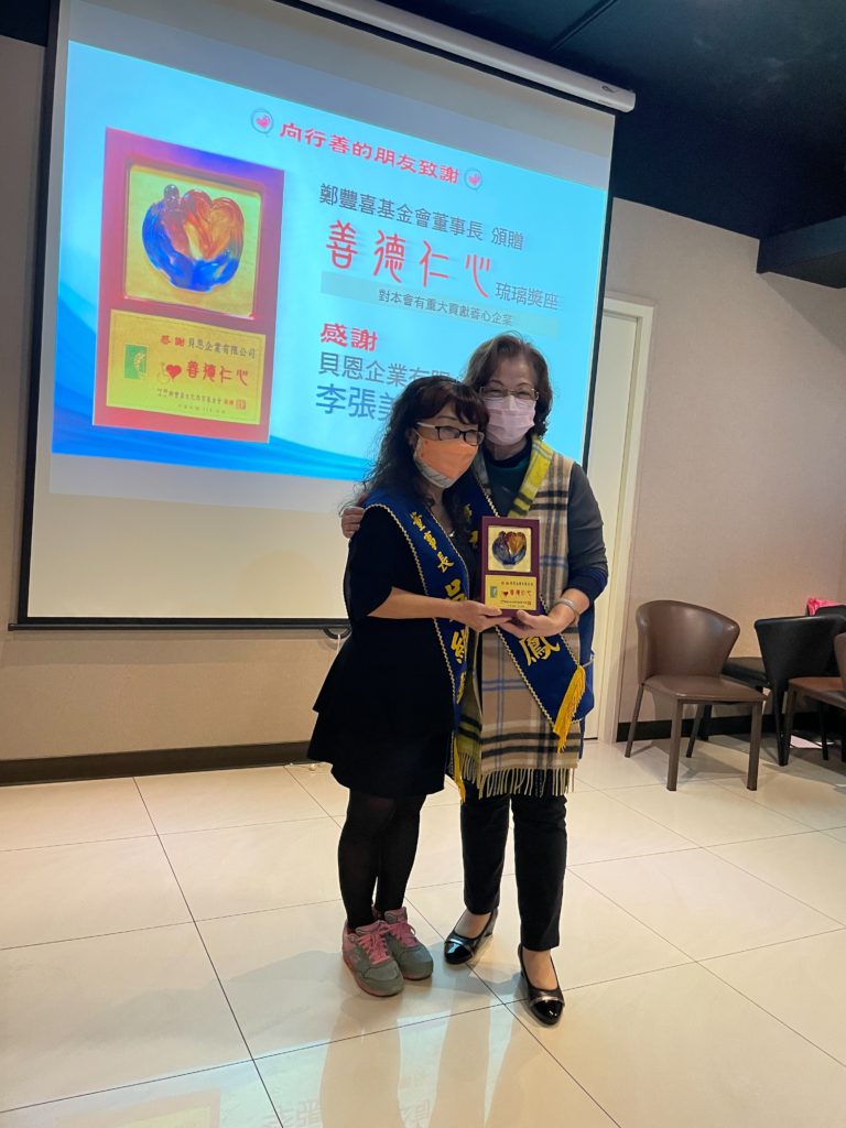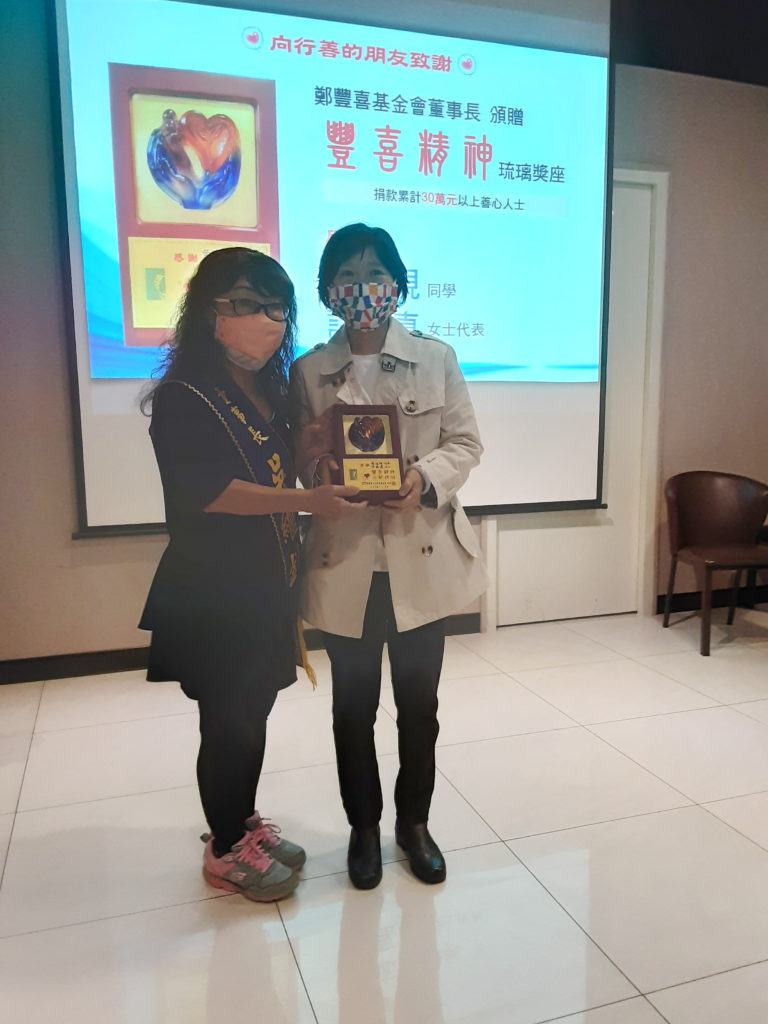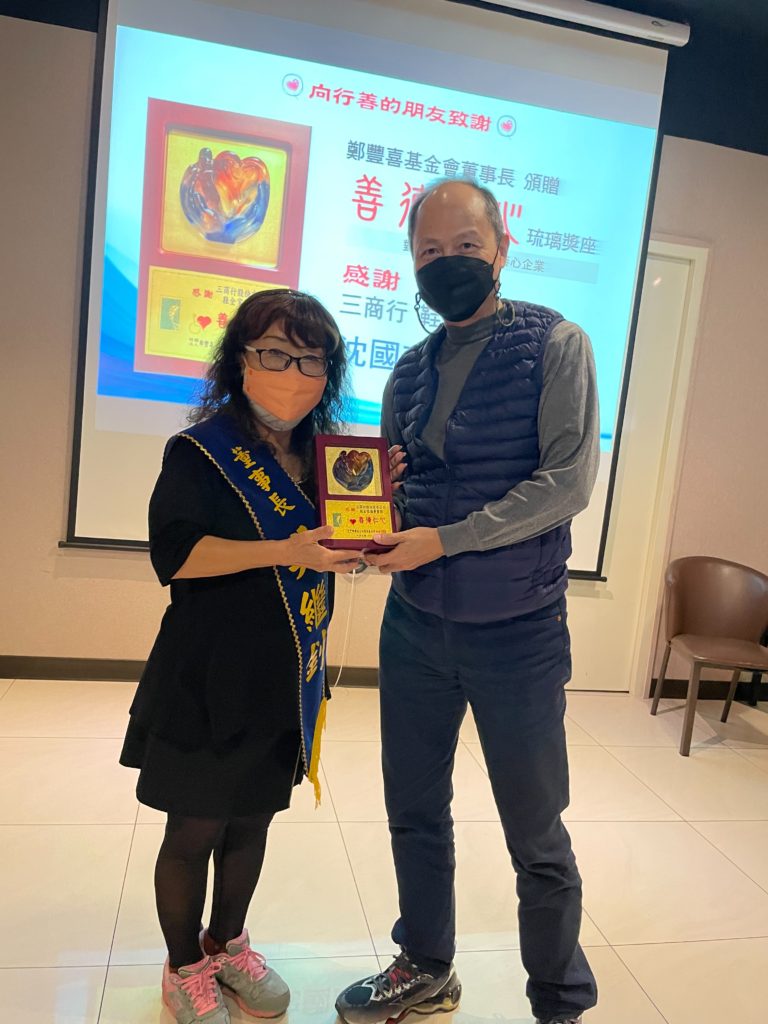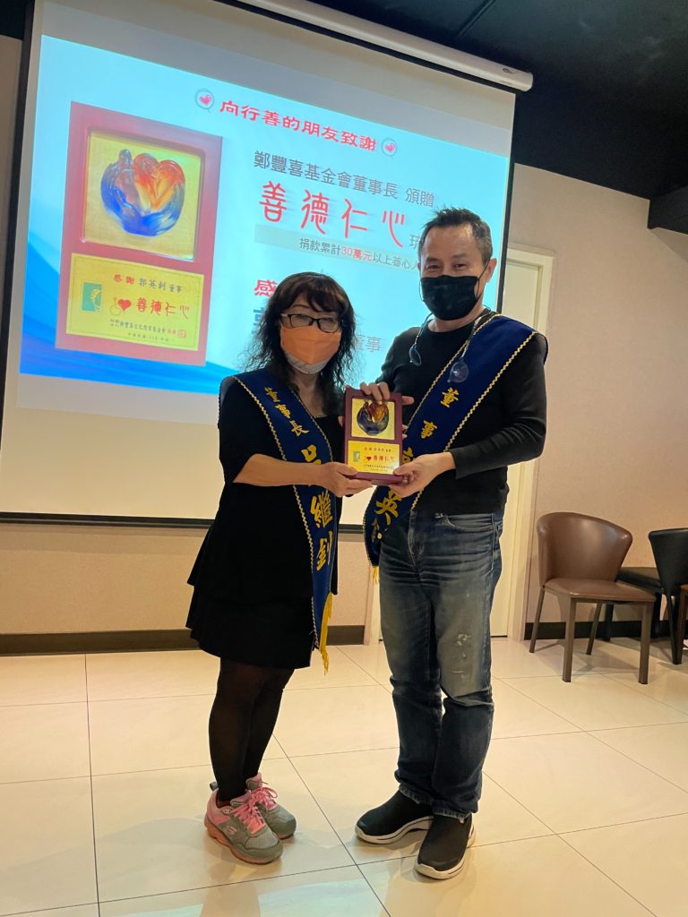 鄭豐喜基金會感恩行善的朋友,邀請對基金會有重大貢獻及捐款累計超過30萬的行善朋友頒贈「善德仁心」琉璃獎座。